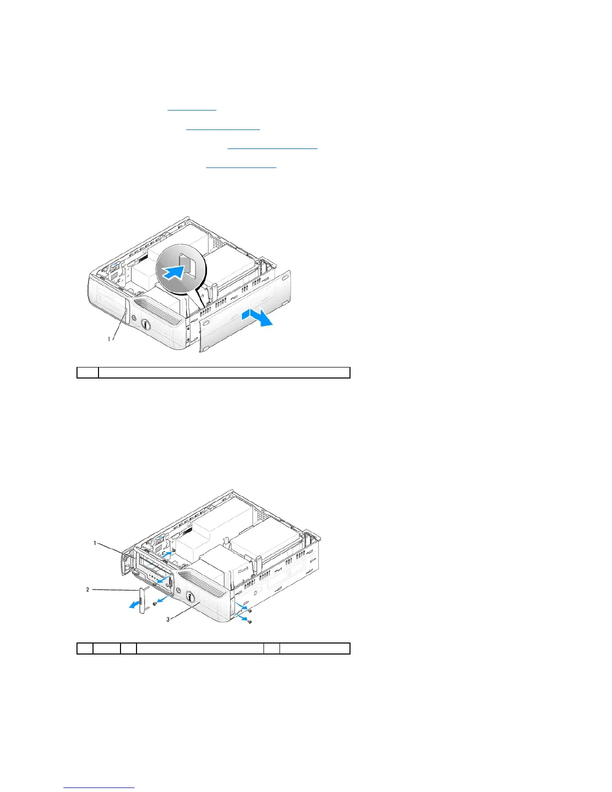 10. Unscrew the screw that secures the top of the front panel from the inside of the computer chassis.