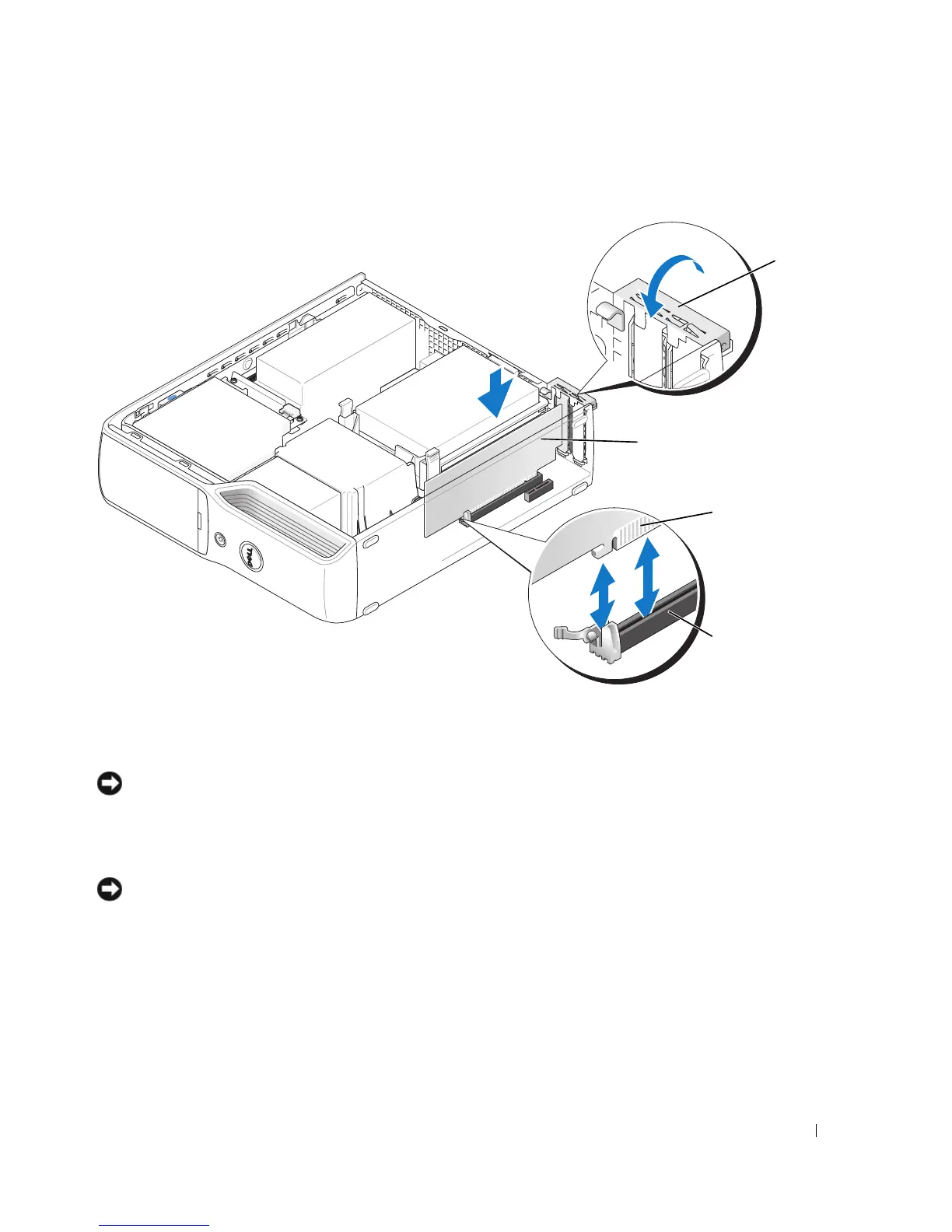 NOTICE: Do not route card cables over or behind the cards. Cables routed over the cards can prevent the