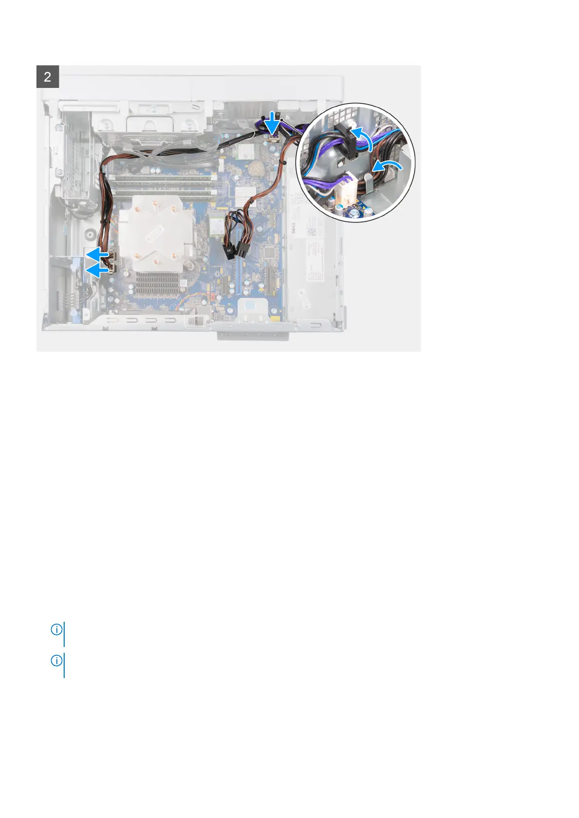 3. Route the power cable through the routing guides on the chassis and connect the power cables to their respective connectors on the