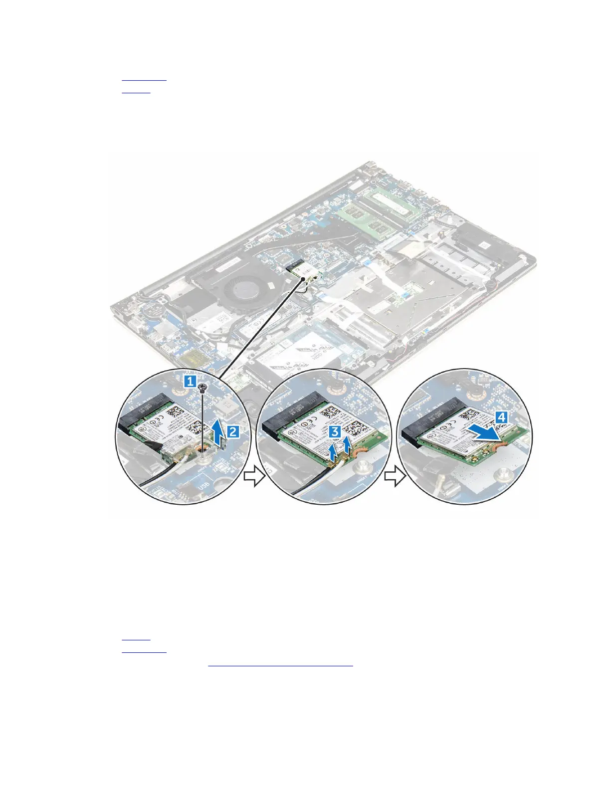 4. Connect the antenna cables to the connectors marked on the WLAN card.