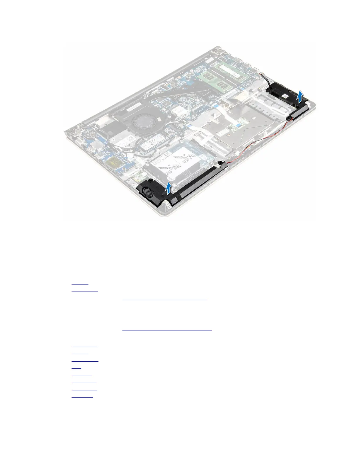 3. Connect the speaker cables to the connectors on the system board and the LED board.