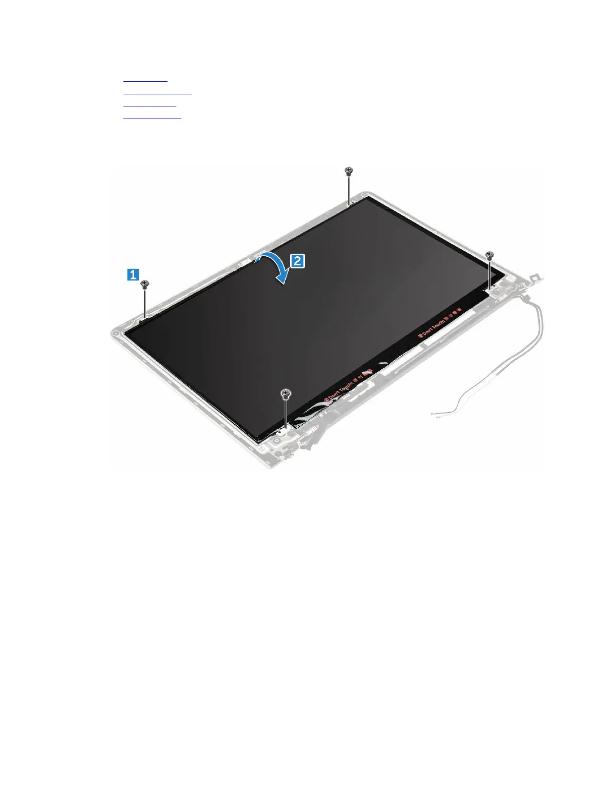 a. Remove the screws that secure the display [1].