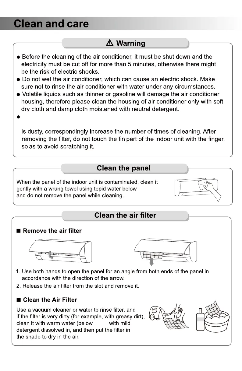 DELLA 048-MS-12 - Clean and Care; Panel Cleaning Procedure; Air Filter Cleaning and Reinstallation