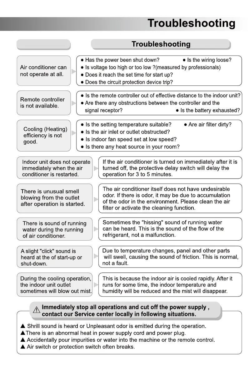 DELLA 048-MS-12 - Operation & Remote Control Issues; Performance, Sound & Air Quality Issues; Critical Fault Indicators