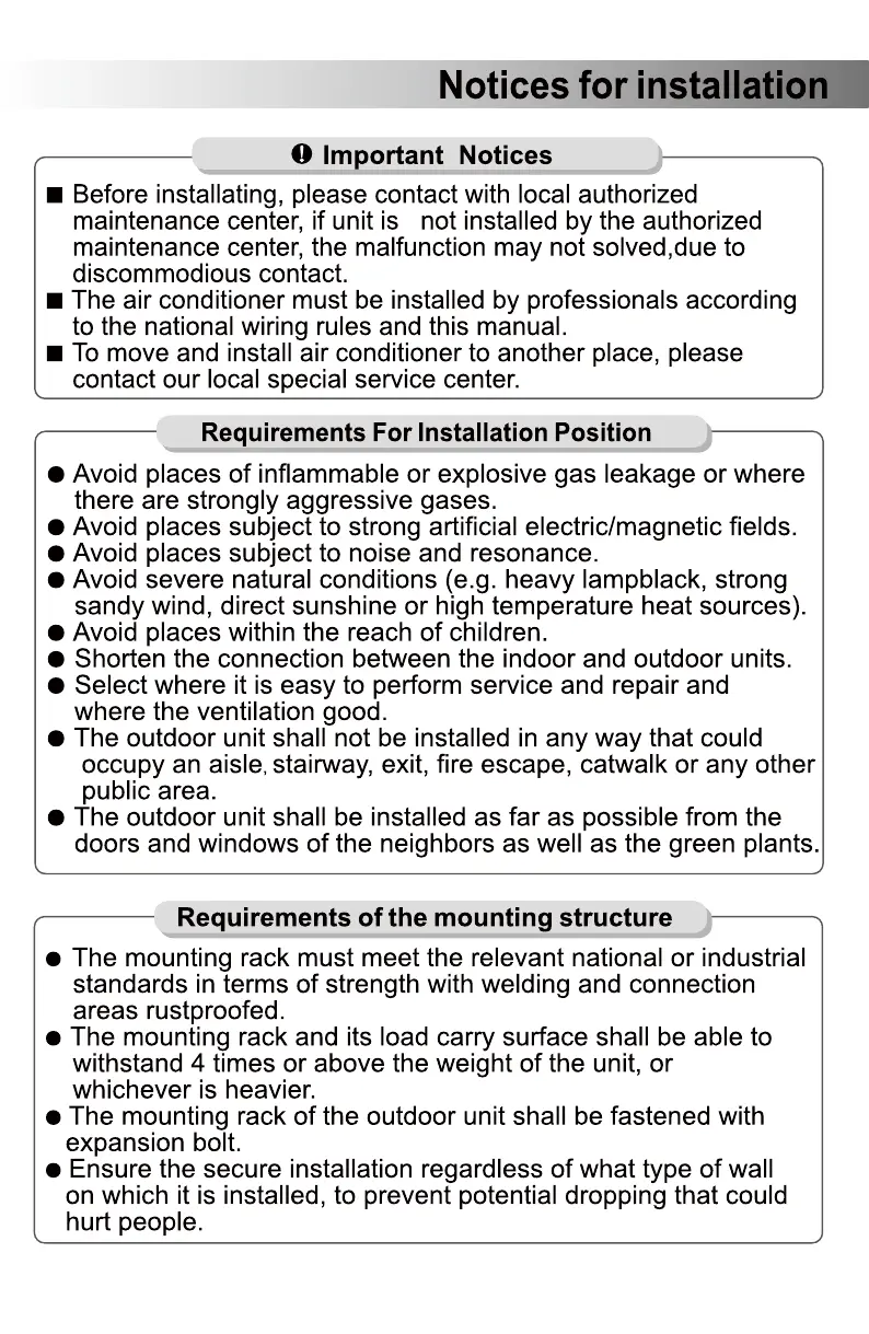 DELLA 048-MS-12 - Notices for Installation; Installation Prerequisites & Site Selection; Mounting Structure Requirements