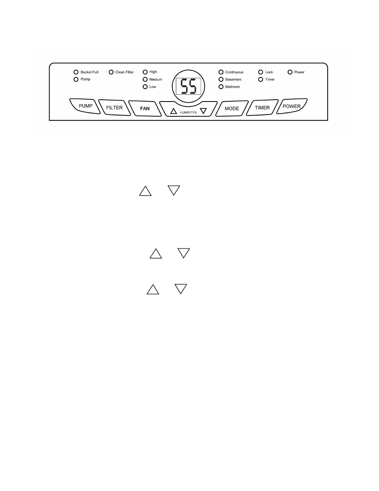Press the or button to set the desired humidity in the room from