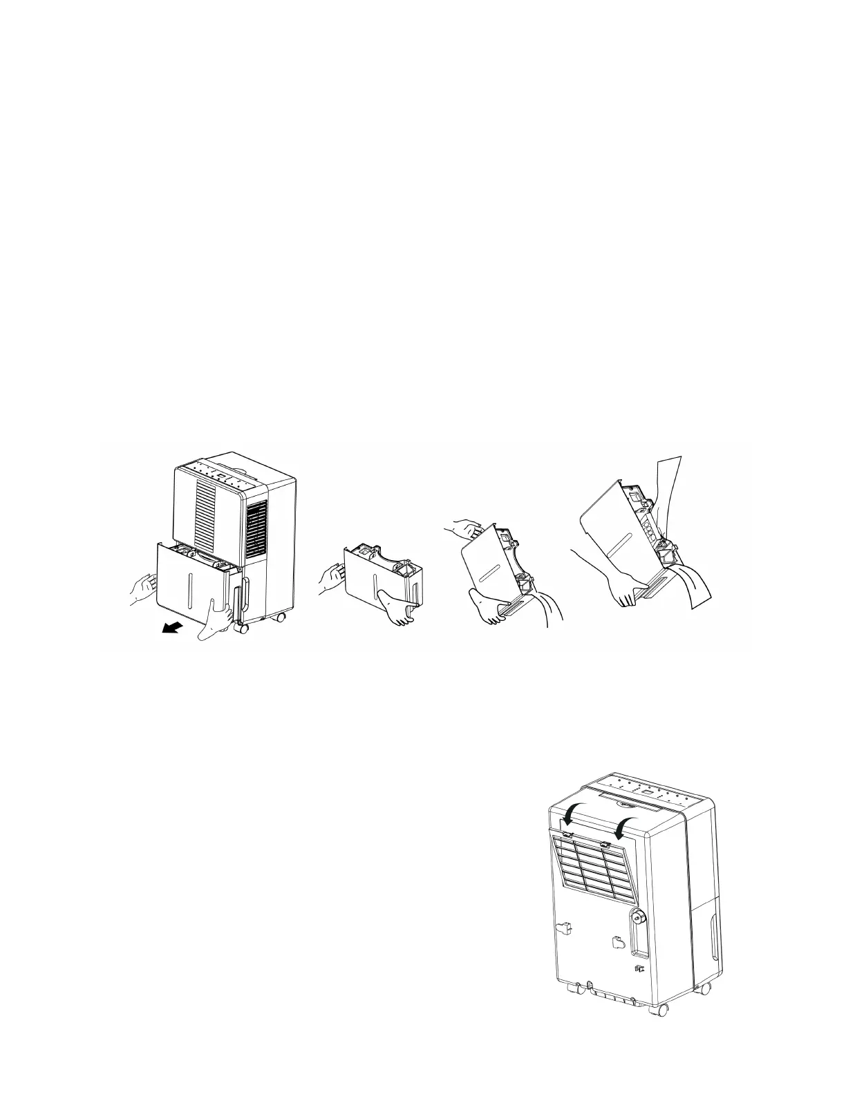 The bucket full indicator will light up when the water bucket is full. The compressor will automatically turn