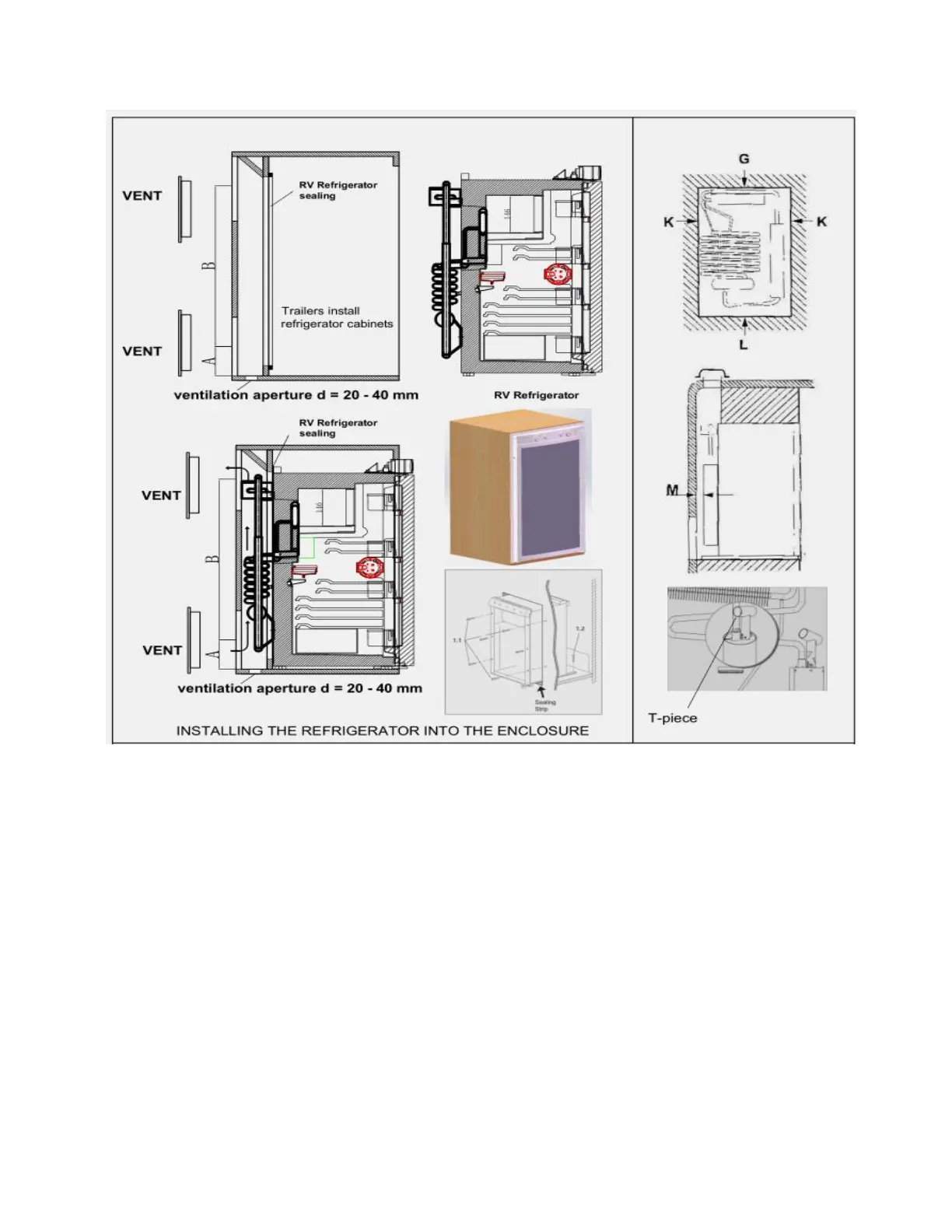 illustrated in for the top (G), sides (K), bottom (L) of the refrigerator; Allow a gap of 0.6- 0.8" (15-20 mm) between the