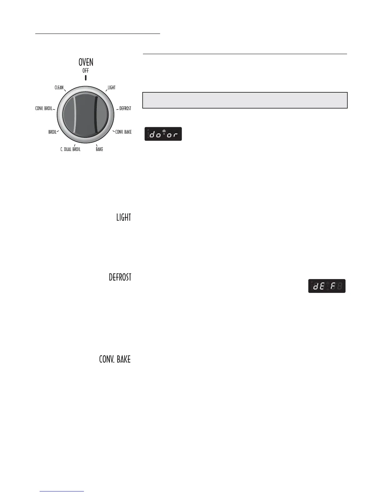 Only the fan and the oven lamp switch on. Defrosting takes place