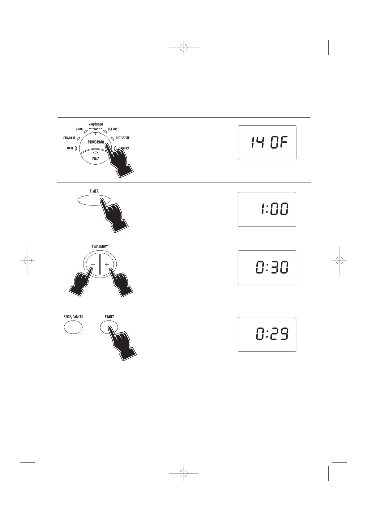 • The set time can be modified during cooking by simply repeating points 2 and 3. The countdown will