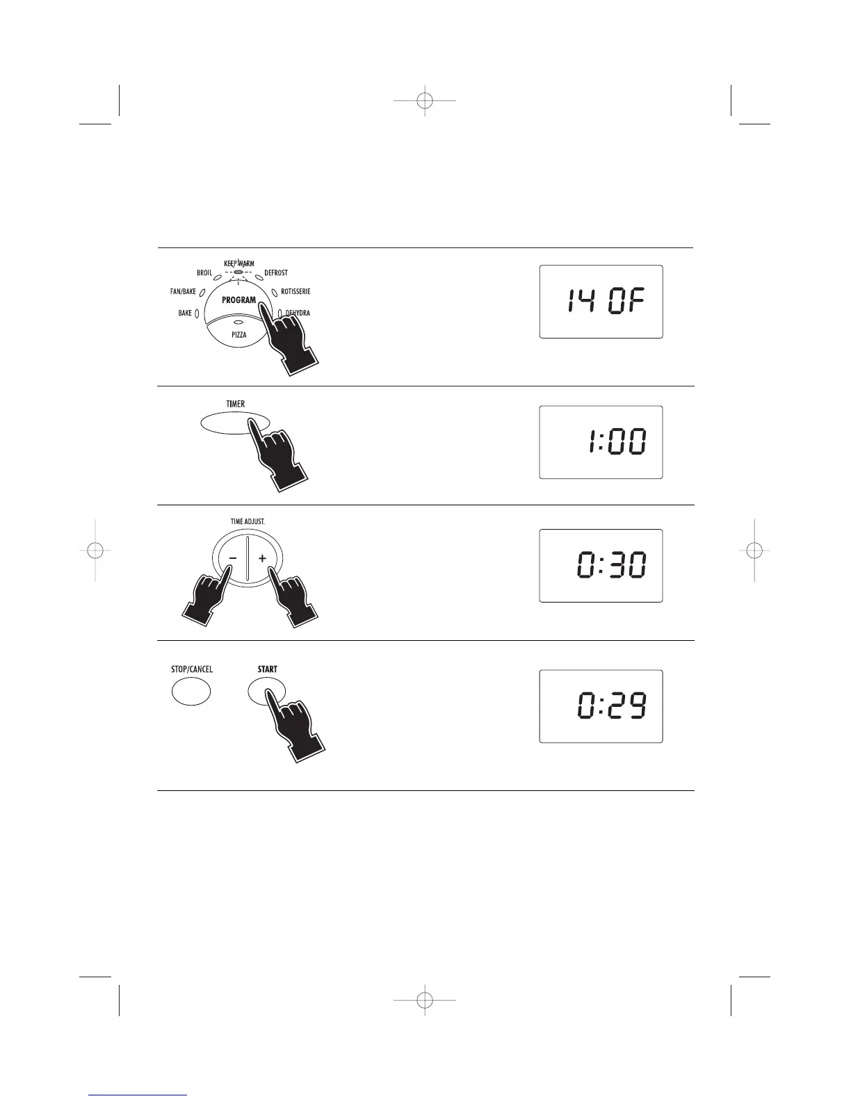 • The set time can be modified during cooking by simply repeating points 2 and 3. The countdown will