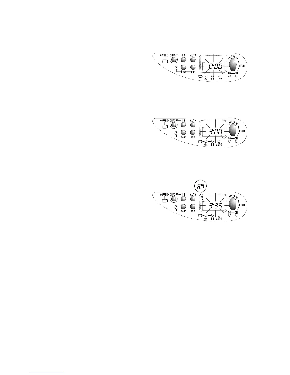 “0:00” flashes on the display;