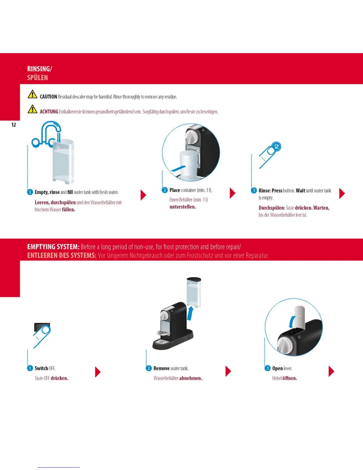 DeLonghi Citiz - Post-Descaling and Storage; Rinsing the Machine