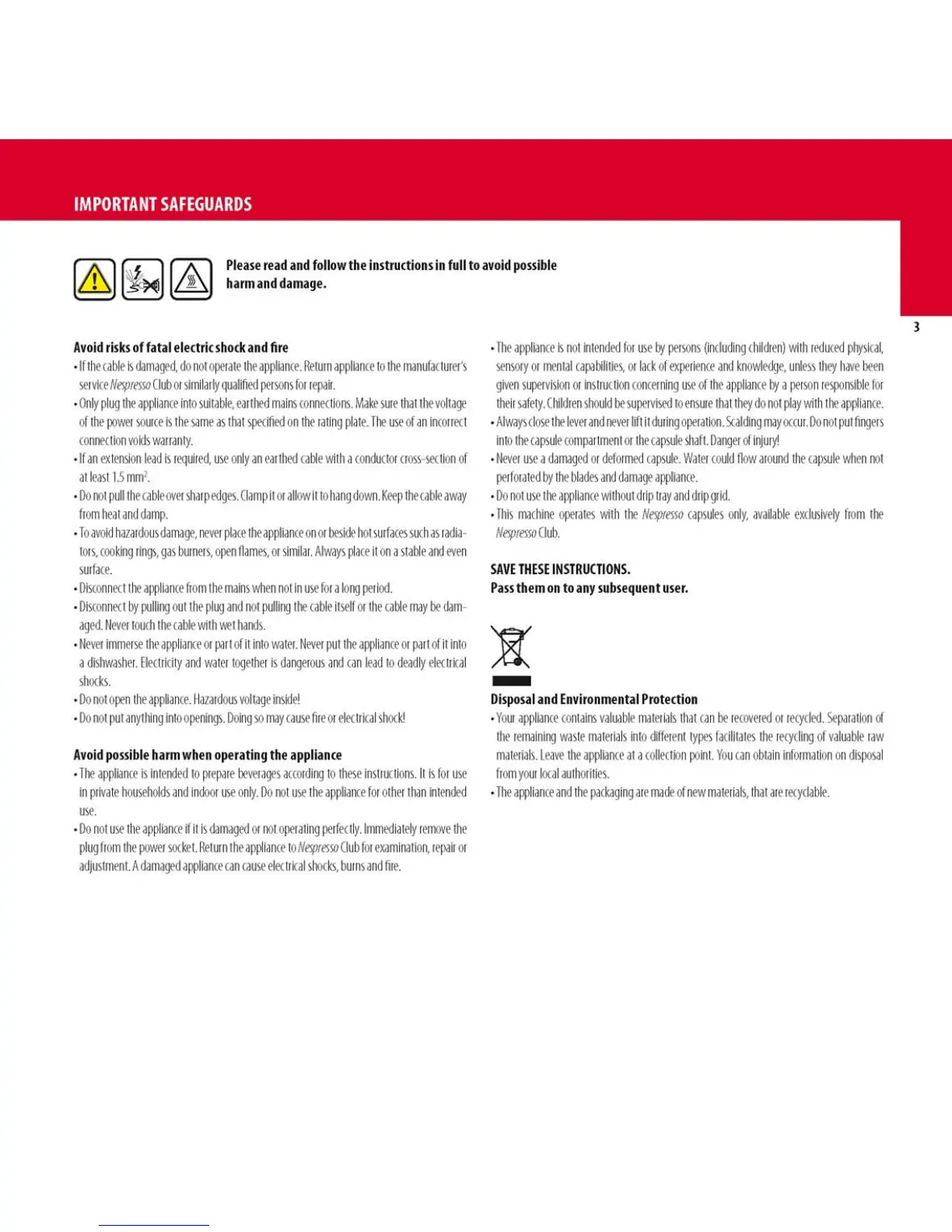 DeLonghi Citiz - Important Safeguards; Electrical Safety and Fire Prevention; Operational Safety Precautions