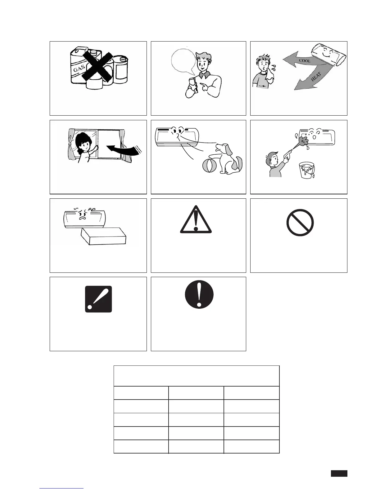 animals. Do not spray water onto the air-conditioner.