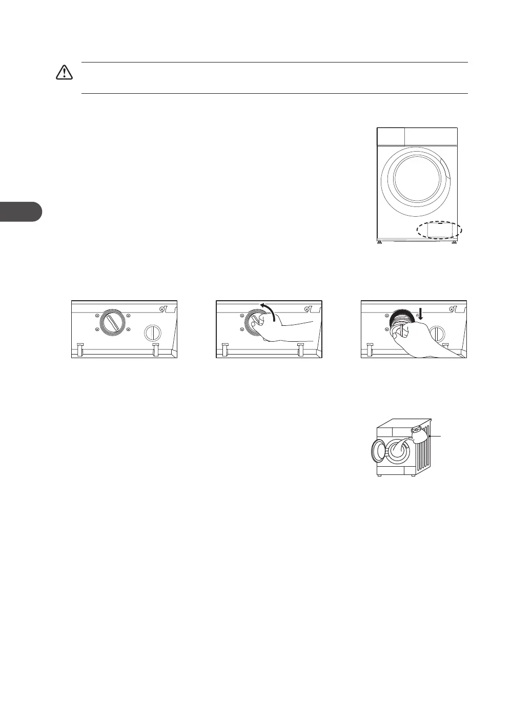 Be careful not to burn yourself while cleaning the drain filter. Water draining from