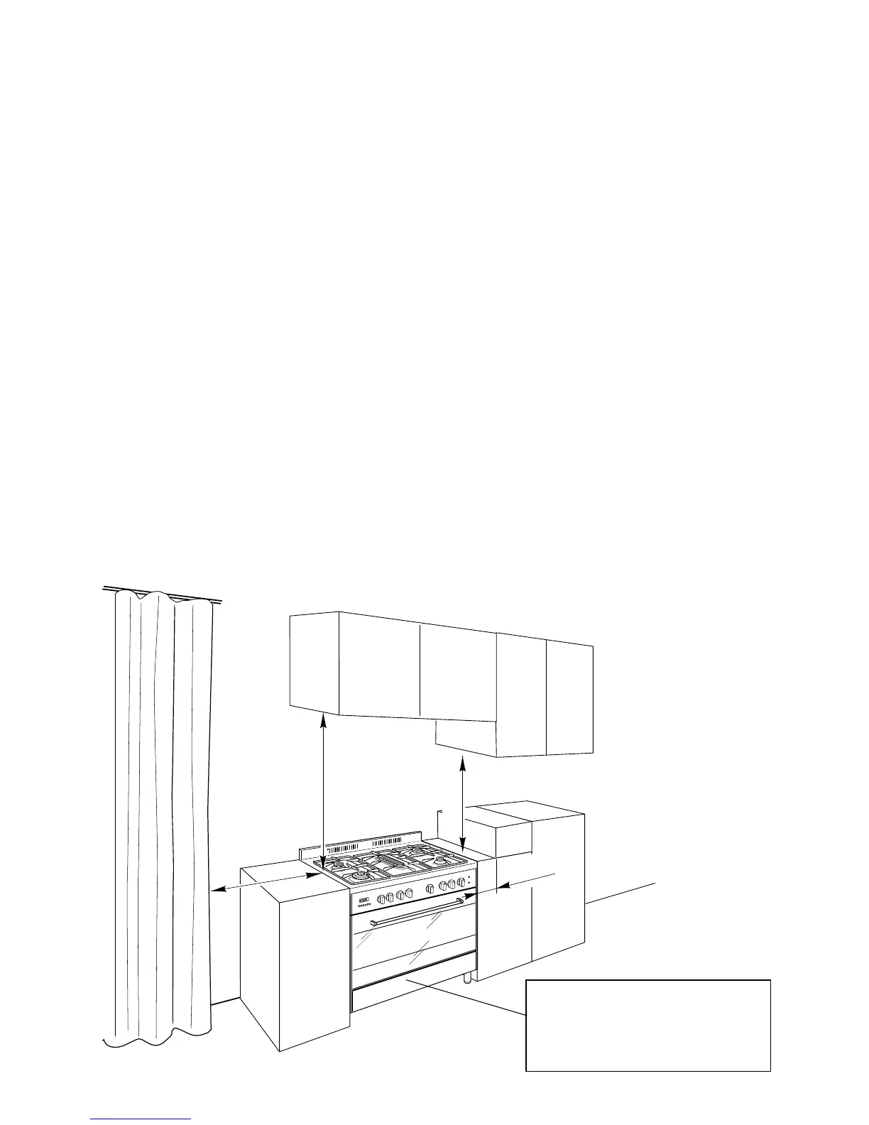 Where the dimensions from the periphery of the nearest burner to any vertical com-