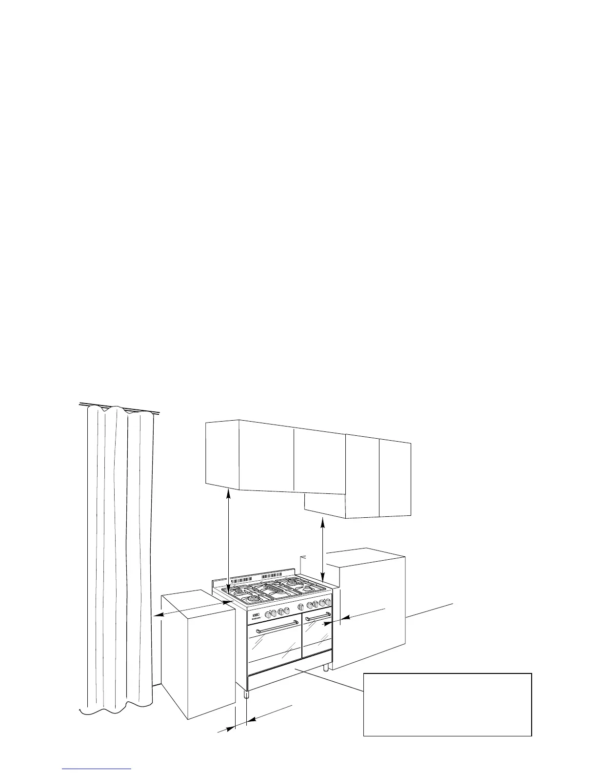 Where the dimensions from the periphery of the nearest burner to any vertical com-