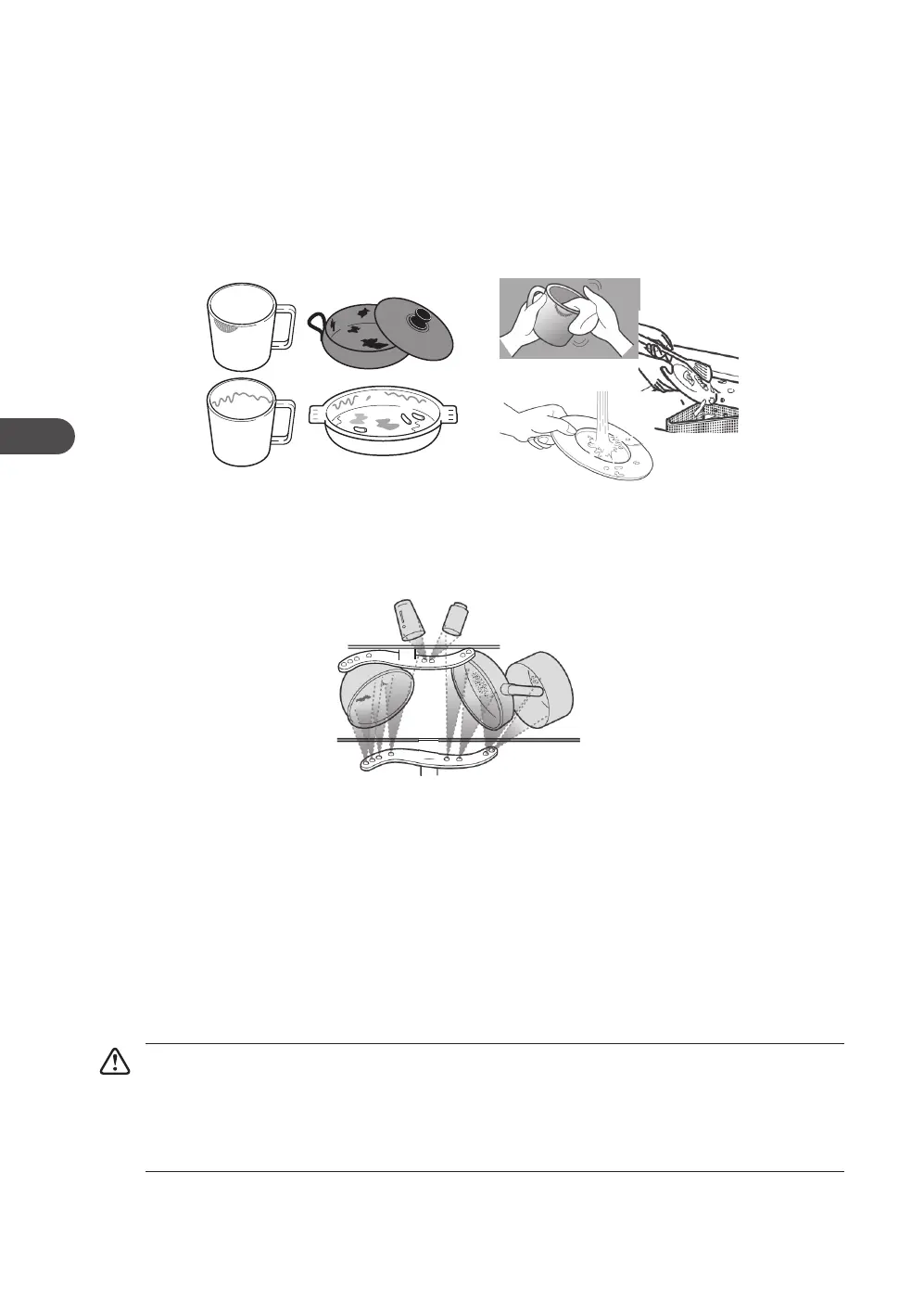 • Τα σκεύη με κοιλότητες, όπως φλιτζάνια, ποτήρια, τηγάνια κ.λπ. πρέπει να τοποθετούνται