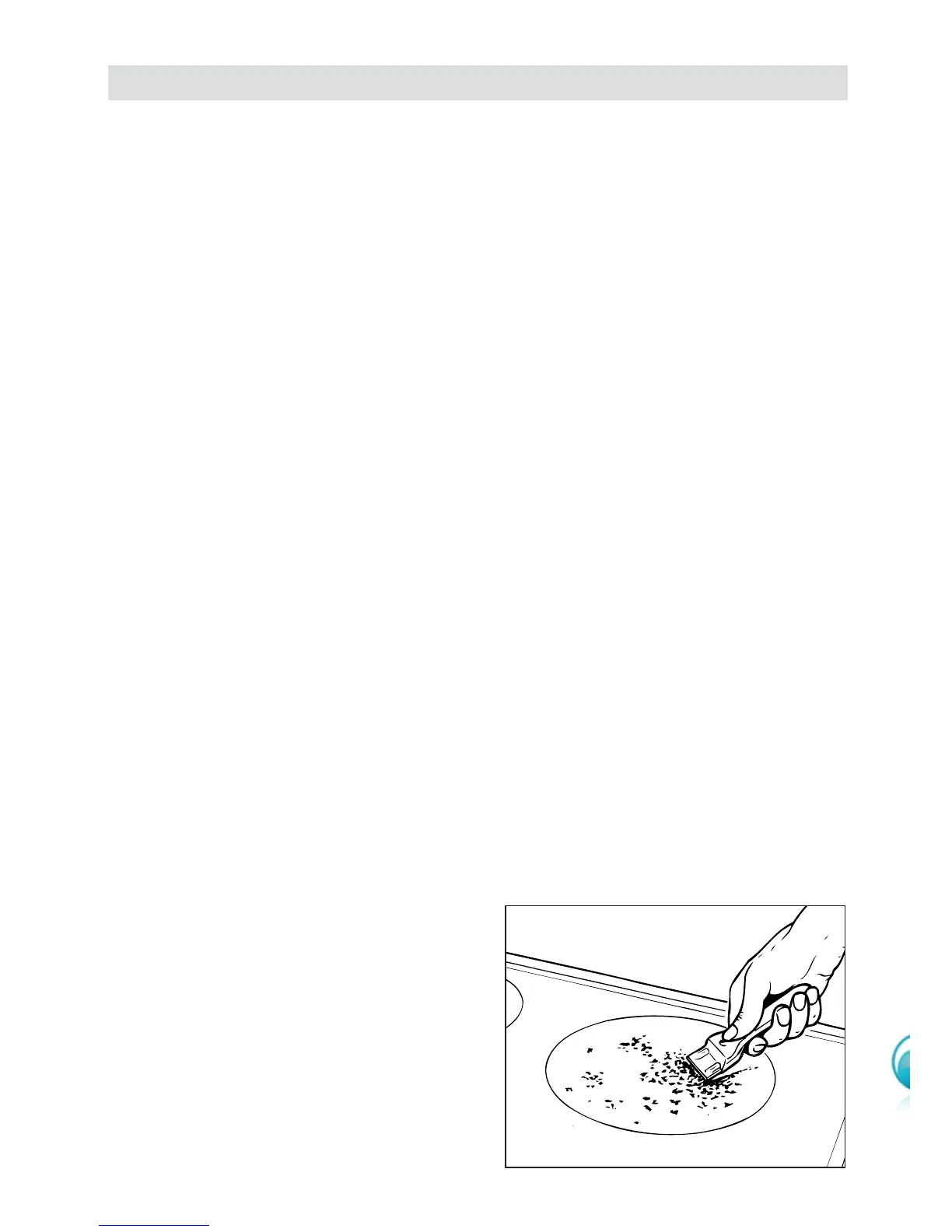 using a special scraper to avoid permanent damage to the pyroceram surface.