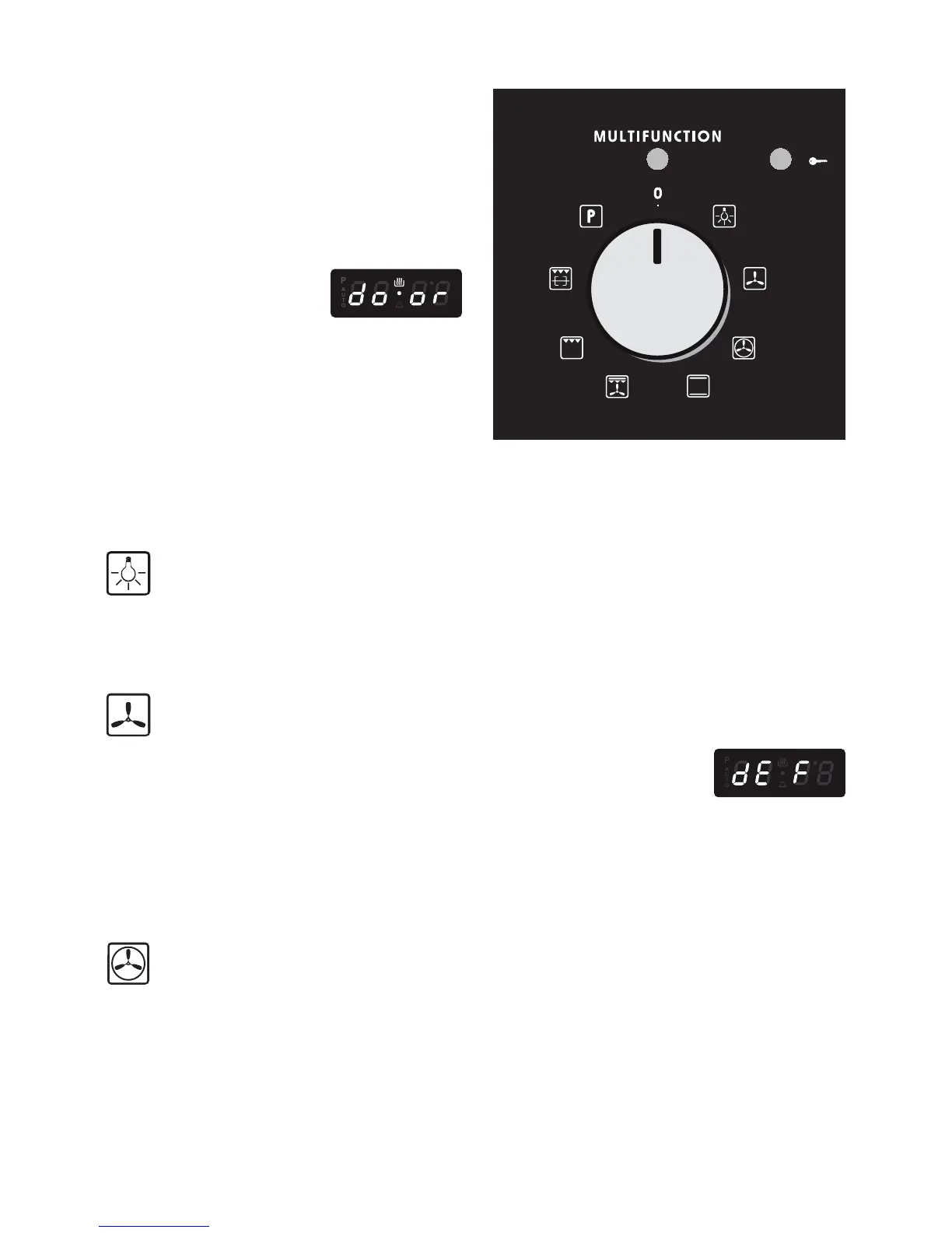 Only the oven fan and the oven lamp switch on.