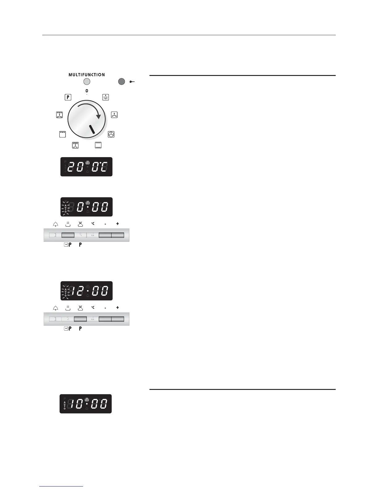 1. Set the cooking function by turning the oven selec-
