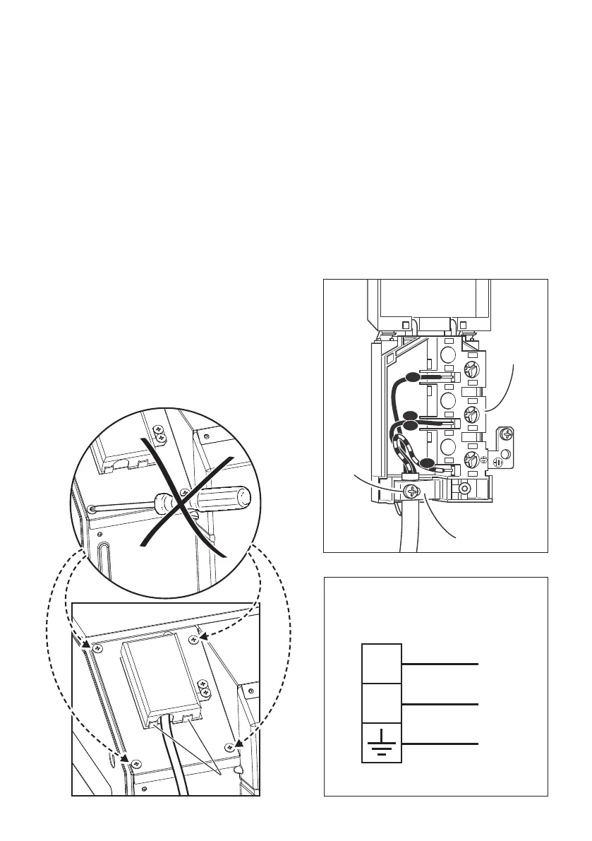 IMPORTANT: To connect the power supply cable DO NOT unscrew the screws xing