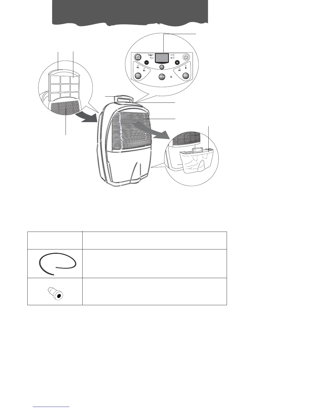DeLonghi DEC180E - Appliance Description and Components; Control Panel; Condensate Collection Tank; Air Intake Grille