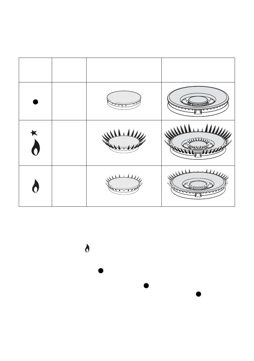 ■ Note that, if you are using a burner at the minimum setting, you turn the knob clockwise