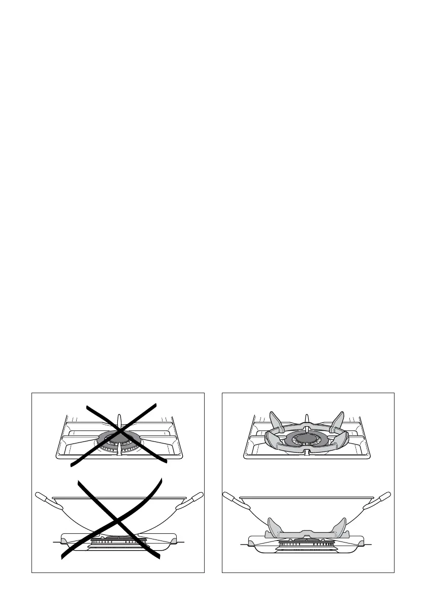 The special grille for wok pans (g. 29) MUST BE PLACED ONLY over the pan-rest for the