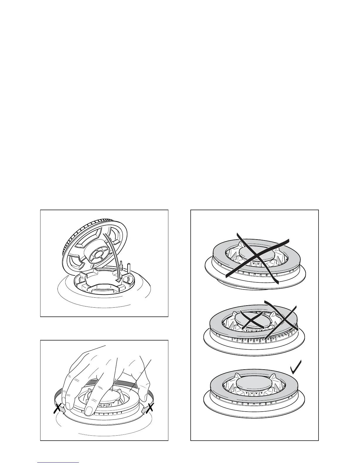 The triple ring burner must be correctly positioned (see fig. 20); the burner rib