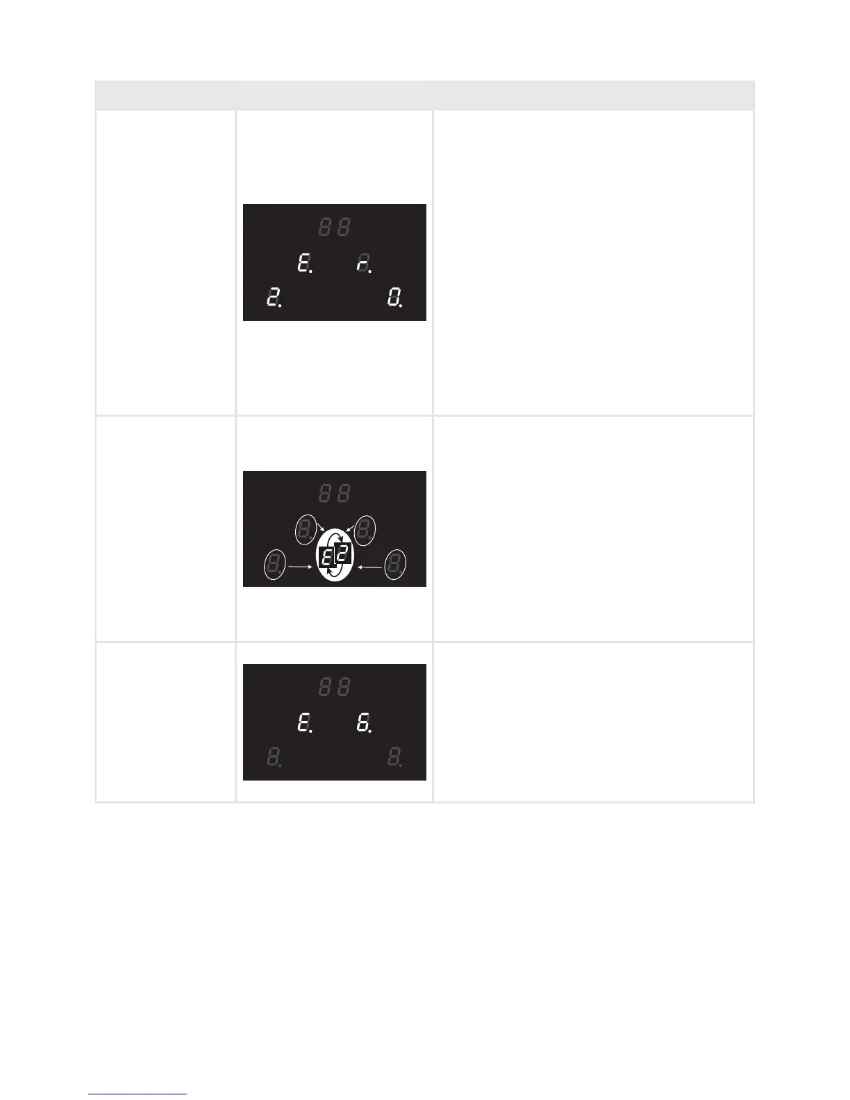 ERROR CODES ON THE DISPLAYS OF THE COOKING ZONES
