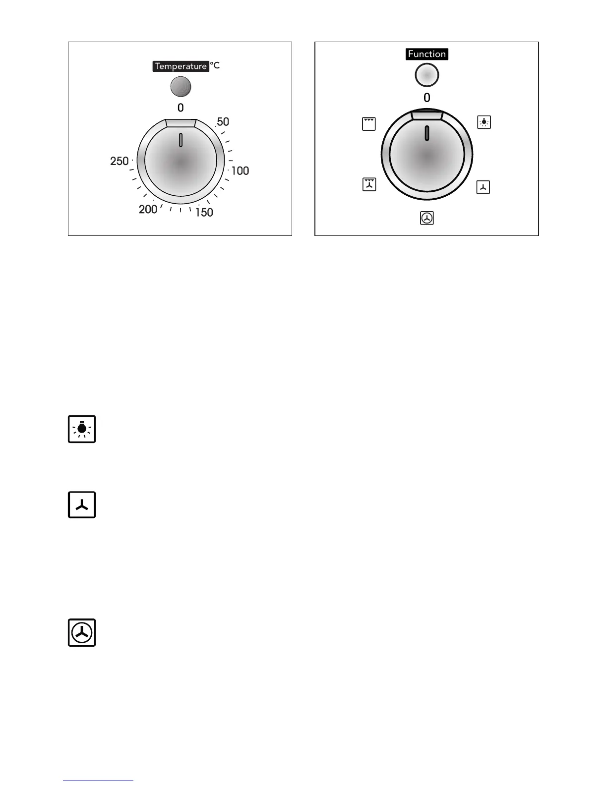 Rotate the knob clockwise to set the oven for one of the following functions.