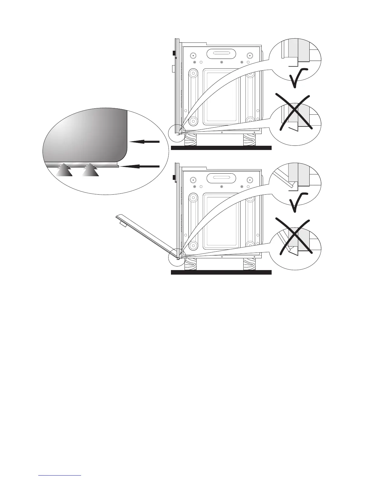 Please take extra care not to damage the lower trim of the oven.