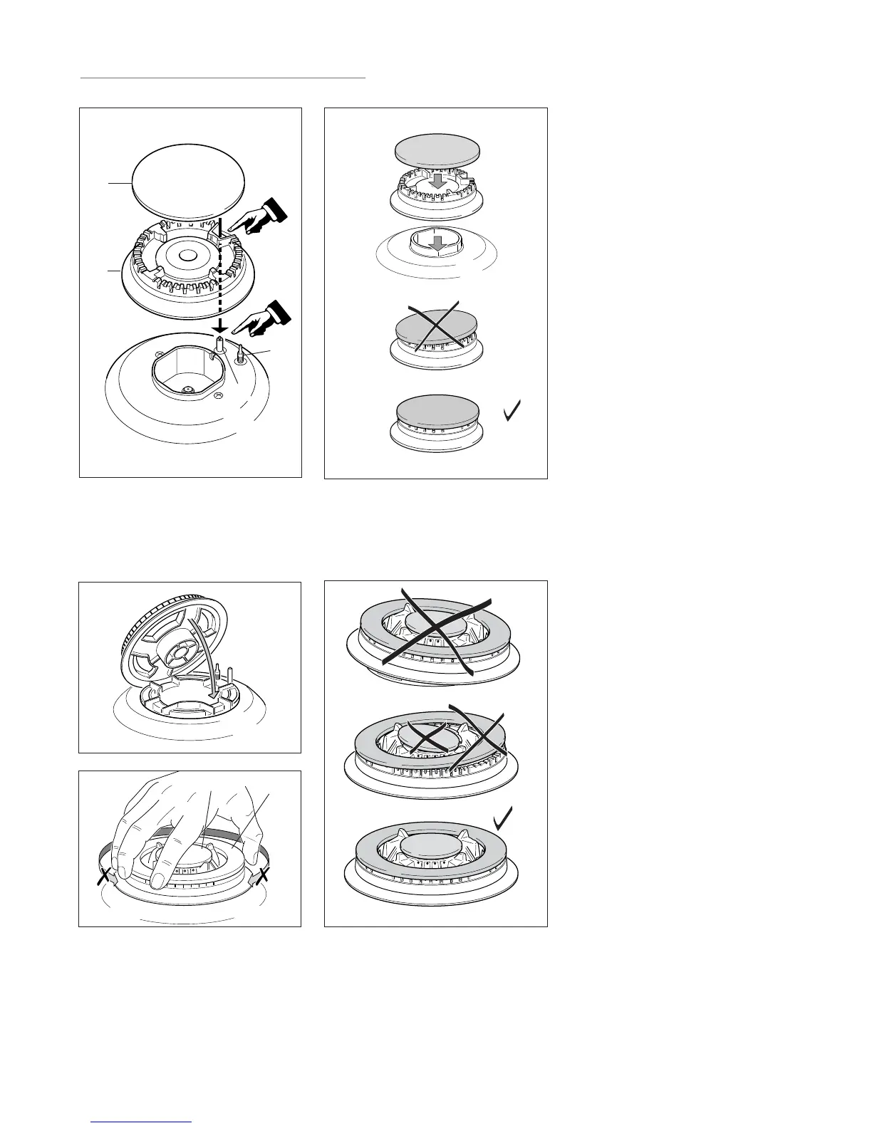 The burner correctly positioned must not