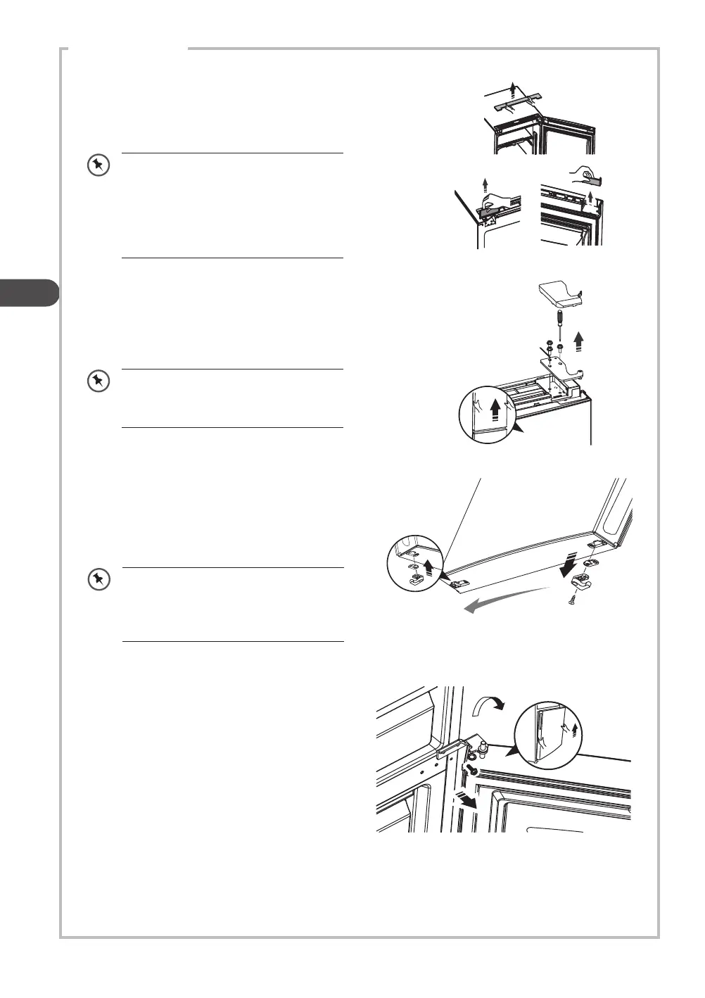 2. Remove the upper hinge cover, screws