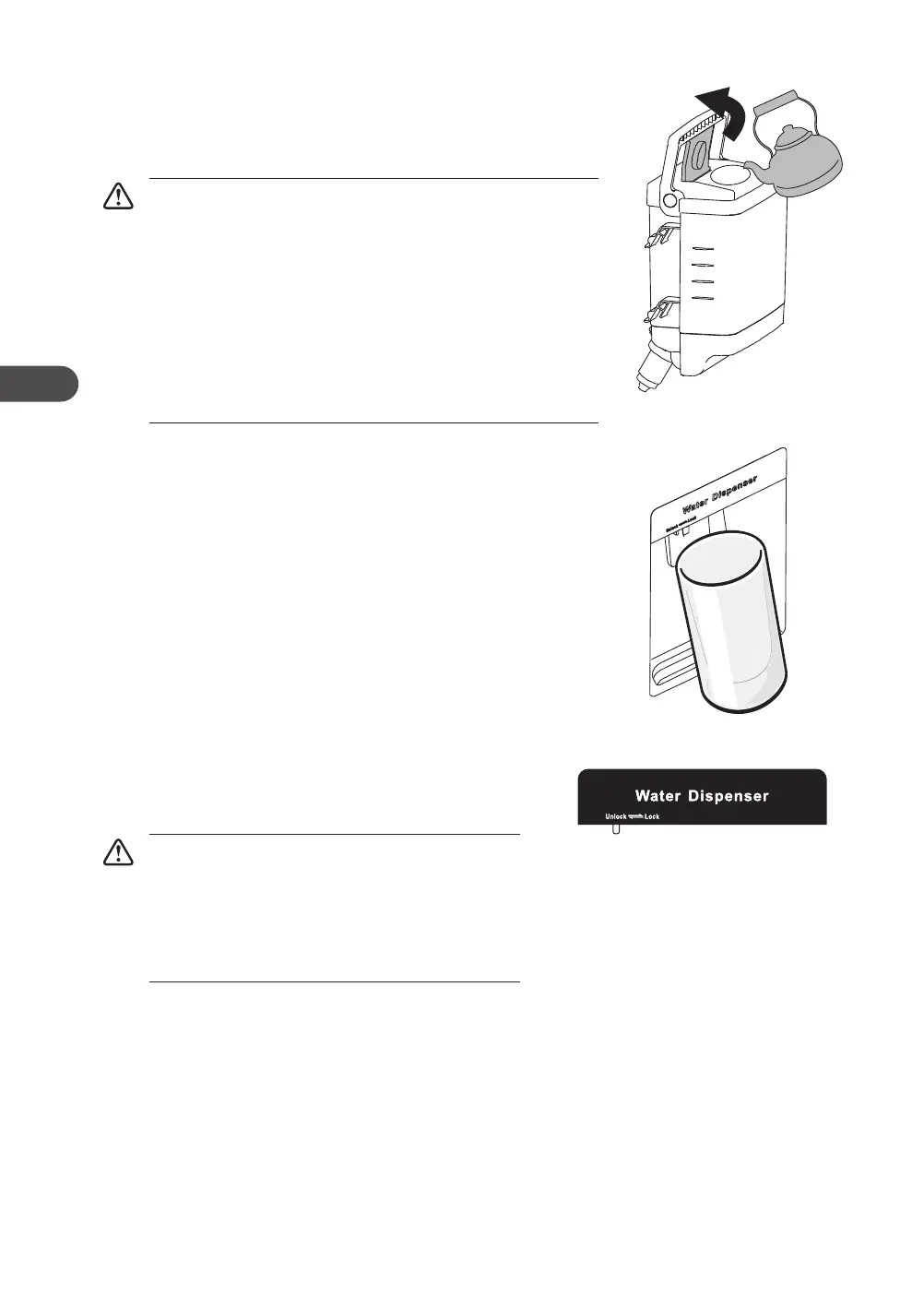 • Before you dispense the water, make sure the lock