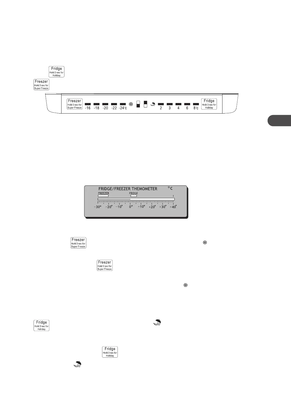 for 3 seconds to activate the holiday mode. will light up. Temperature in the fridge will