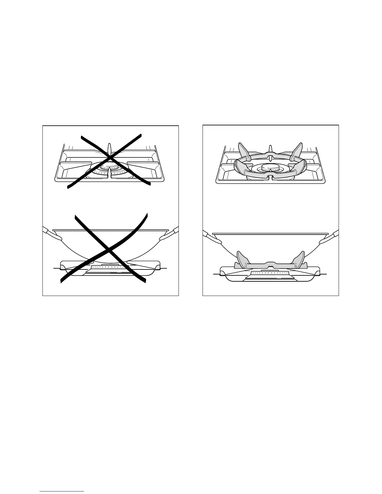 The flat-bottomed pans are to be placed directly onto the pan-support.