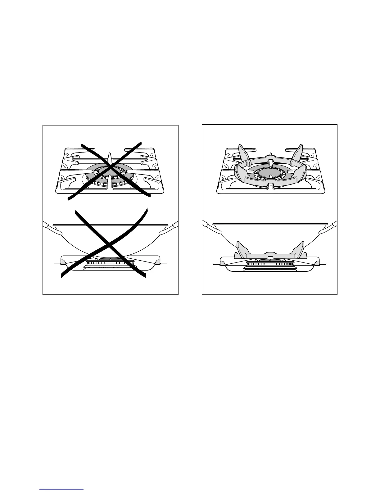 The special grille for wok pans (fig. 4.3b) MUST BE PLACED ONLY over the pan-rest for the