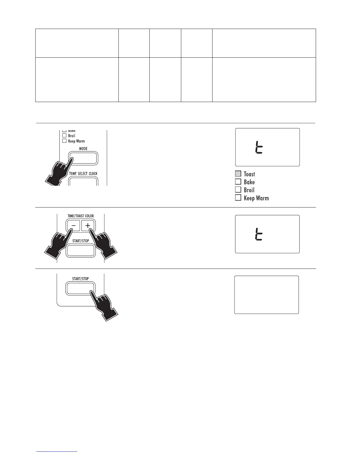 • When toasting, the toasting time will count down on the clock display. The timing will be different for each