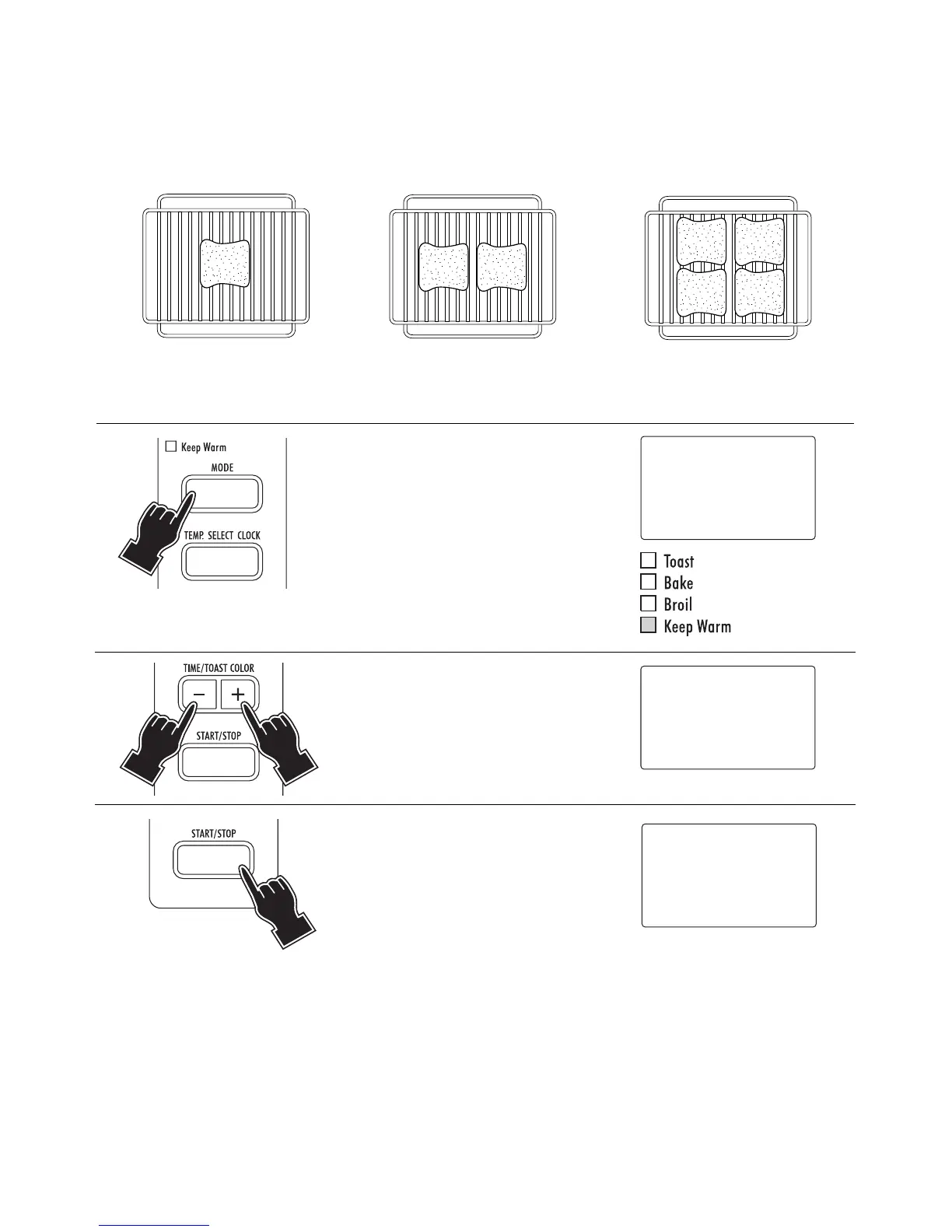 • When toasting bread, both the top and bottom heating elements are on to toast both sides at the same