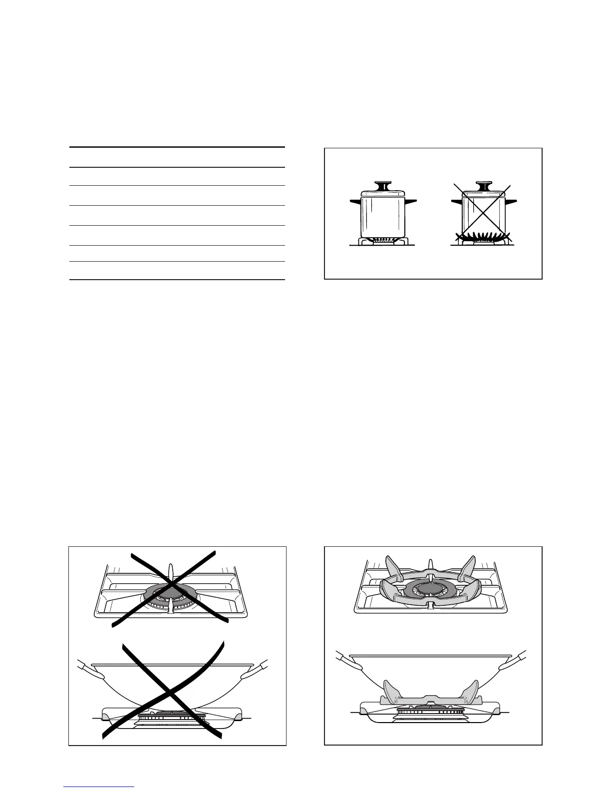 As an indication, the burners and the pans must be used in the following way: