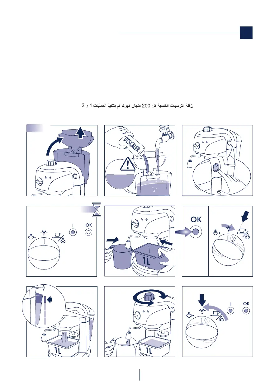 - decalcicazione ogni 200 caè eseguire step 1 e 2 - Procéder au détartrage tous les 200 cafés en eectuant les