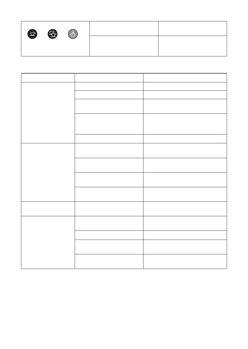 No espresso coee is delivered No water in the tank Fill the tank