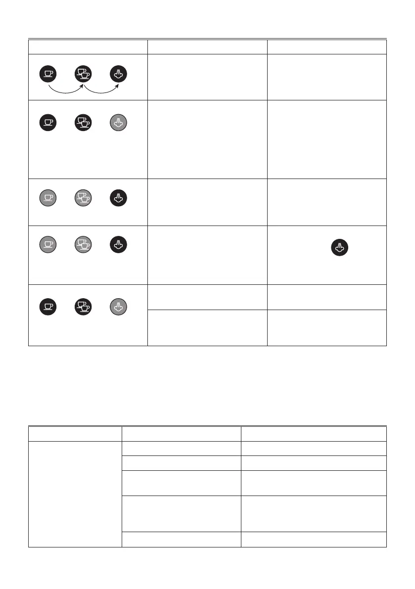 No espresso coee is delivered No water in the tank Fill the tank