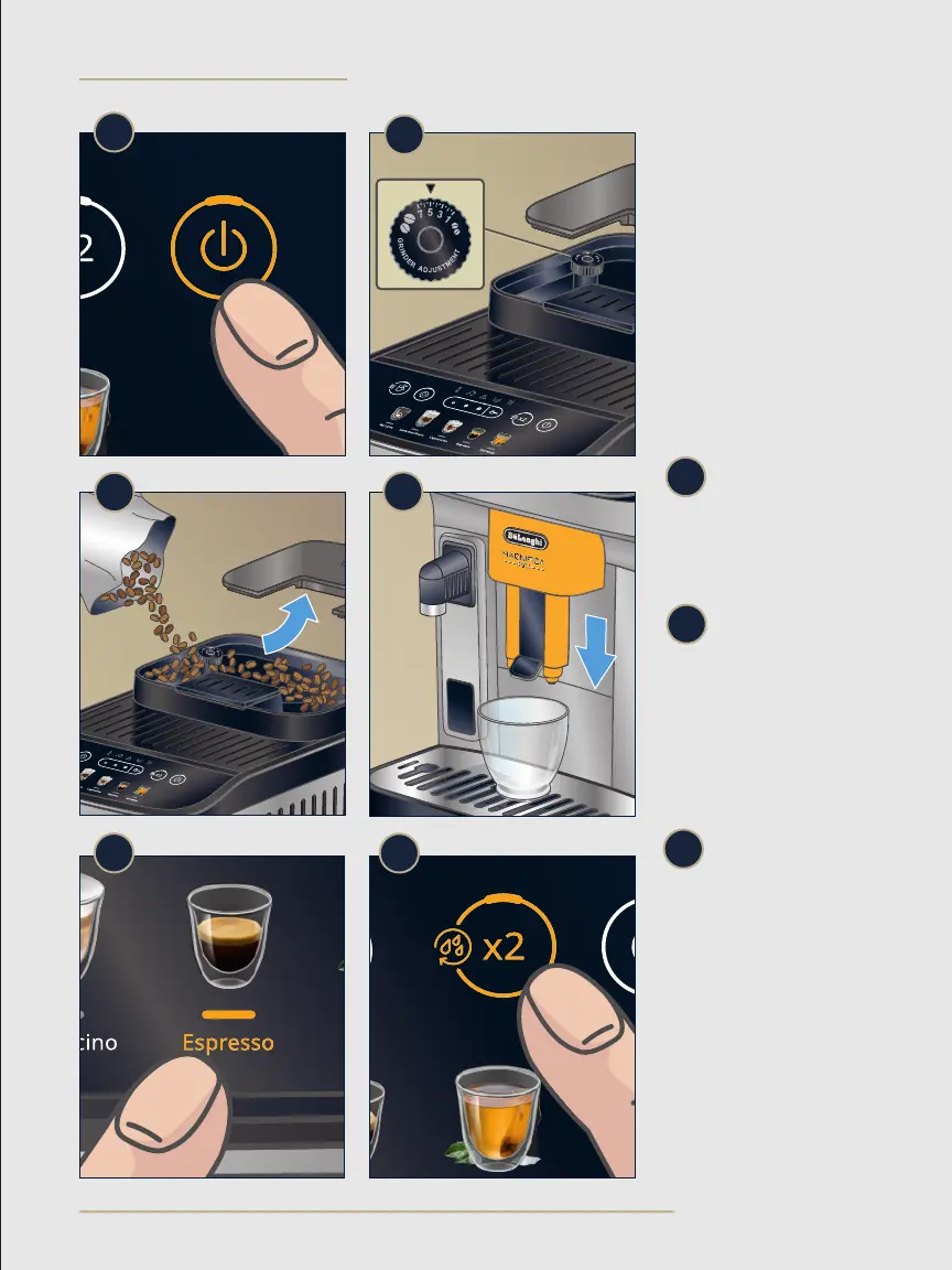 DeLonghi ECAM29063SB - Brewing Your First Espresso; Initial Brews and Rinsing Cycle; Optimizing Espresso with Grinder Settings; Recipe Selection and Customization