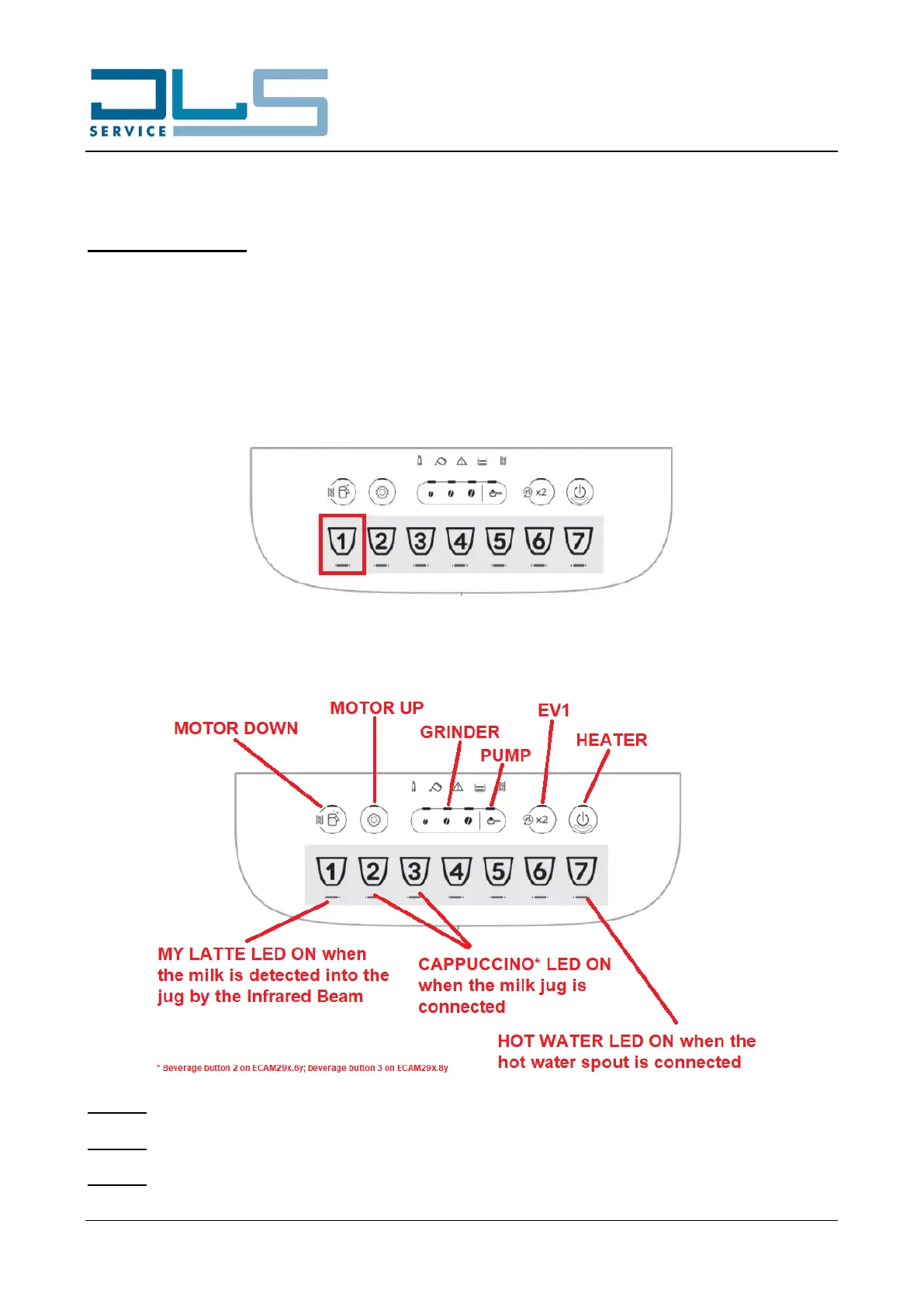 After having accessed the test mode as indicated on paragraph 5.1, press the first beverage icon from the left