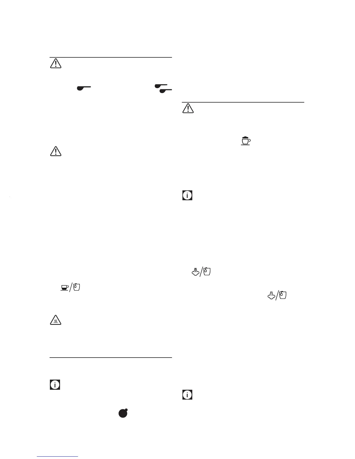 • To make coee again after the milk has been frothed, rst cool the boiler, or the
