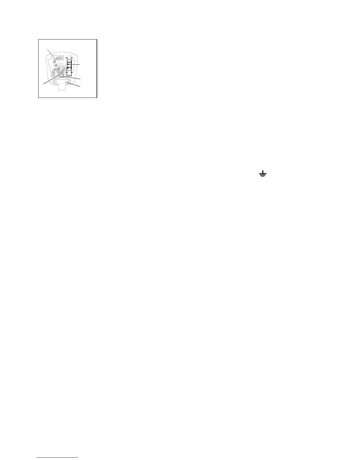 plug which is marked with the letter E or by the earth symbol or coloured green or